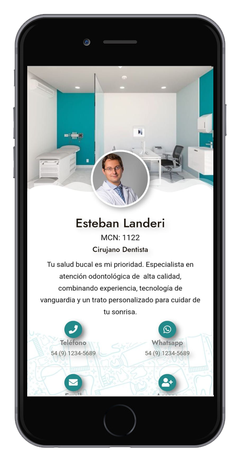 Como una vCard, se comparte con un QR o enlace en segundos por WhatsApp, email o redes sociales.